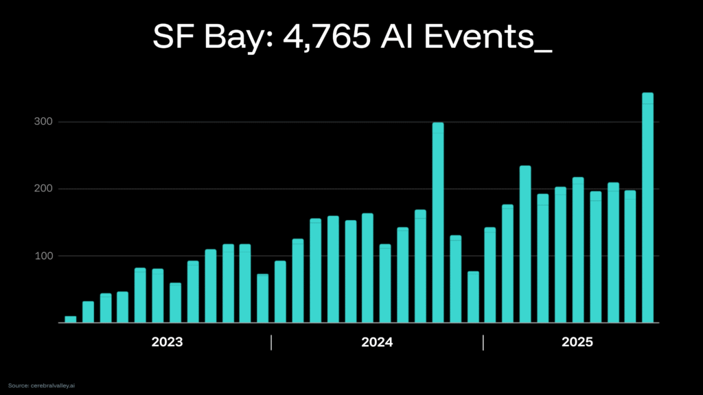 According to my friends from the Cerebral Valley website, The SF Bay leads the world and has hosted 4000+ AI events in just three years –and the frequency is climbing!